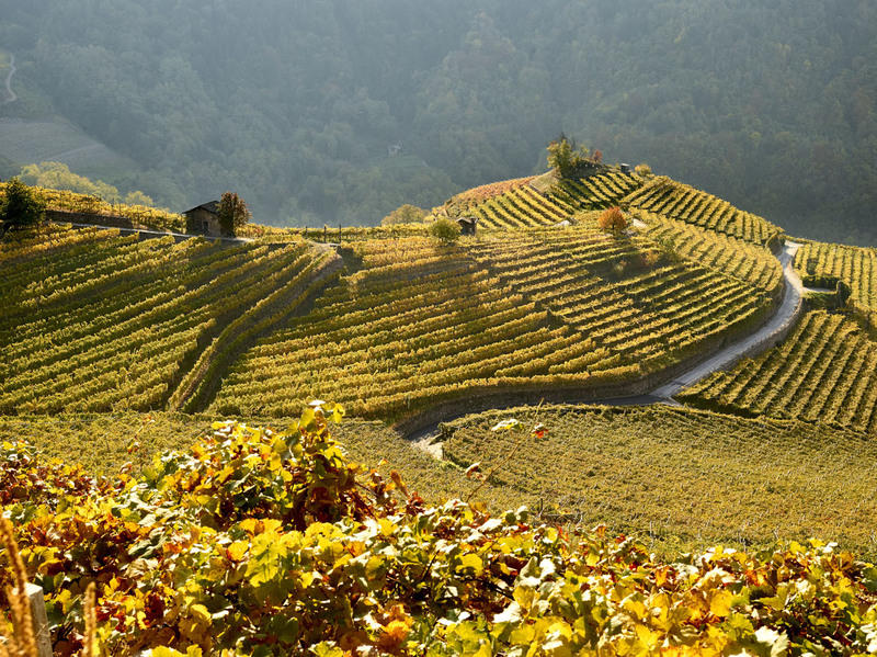 Proseguendo su altre sfumature e sempre alla stessa latitudine troviamo Cembra Cantina di Montagna. Situata nel comune di Cembra a circa 700 metri slm, nell’omonima Valle a nord-est di Trento, dove la bellezza della montagna e la viticoltura si fondono in un paesaggio di grande fascino ed equilibrio. Un’armonia tra uomo e natura che è il risultato del coraggio, della determinazione e dell’amore per il territorio dei vignaioli cembrani, che si tramandano da generazioni il sapere enologico. Sono loro che hanno costruito pietra su pietra oltre 700 km di muretti a secco per sostenere le vigne lungo la valle, bilanciando grazia artigiana e pendenze estreme. D’altro canto, quest’arte ha meritato nel 2018 il riconoscimento come bene immateriale del patrimonio mondiale dell’UNESCO.