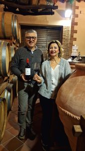 Passiamo ad assaggiare una novità, solo 300 bottiglie per ora prodotte. Sangiovese 2021, macerazione su bucce e raspi fino a giugno. Il suo nome sarà EsSenza. Un vino senza solfiti dove i raspi servono per aumentare le proprietà antiossidanti e per bilanciare l’assenza della solforosa. Una sperimentazione che seguirò con curiosità per vedere come andrà a finire!