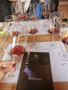 Seconda tappa la Barchessa di Villa Valmarana, del 1600, nome derivante dal fatto che le barche venivano messe a dimora sotto ai suoi archi. Imponente e maestosa con i suoi marmi ed affreschi ci ha accolti per la degustazione di “Florimonte” Millesimato, cuvèe brut, da uve Glera, Pinot Bianco e Chardonnay, metodo charmat lungo, 7 mesi. Per scelta aziendale si discosta dal disciplinare di produzione del Prosecco ed il risultato è uno spumante elegante, complesso e dal bouquet floreale e fruttato di agrume e mela, suadente al naso di camomilla e margherita, morbido al palato, che chiude con grande sapidità proprio come in un bacio.